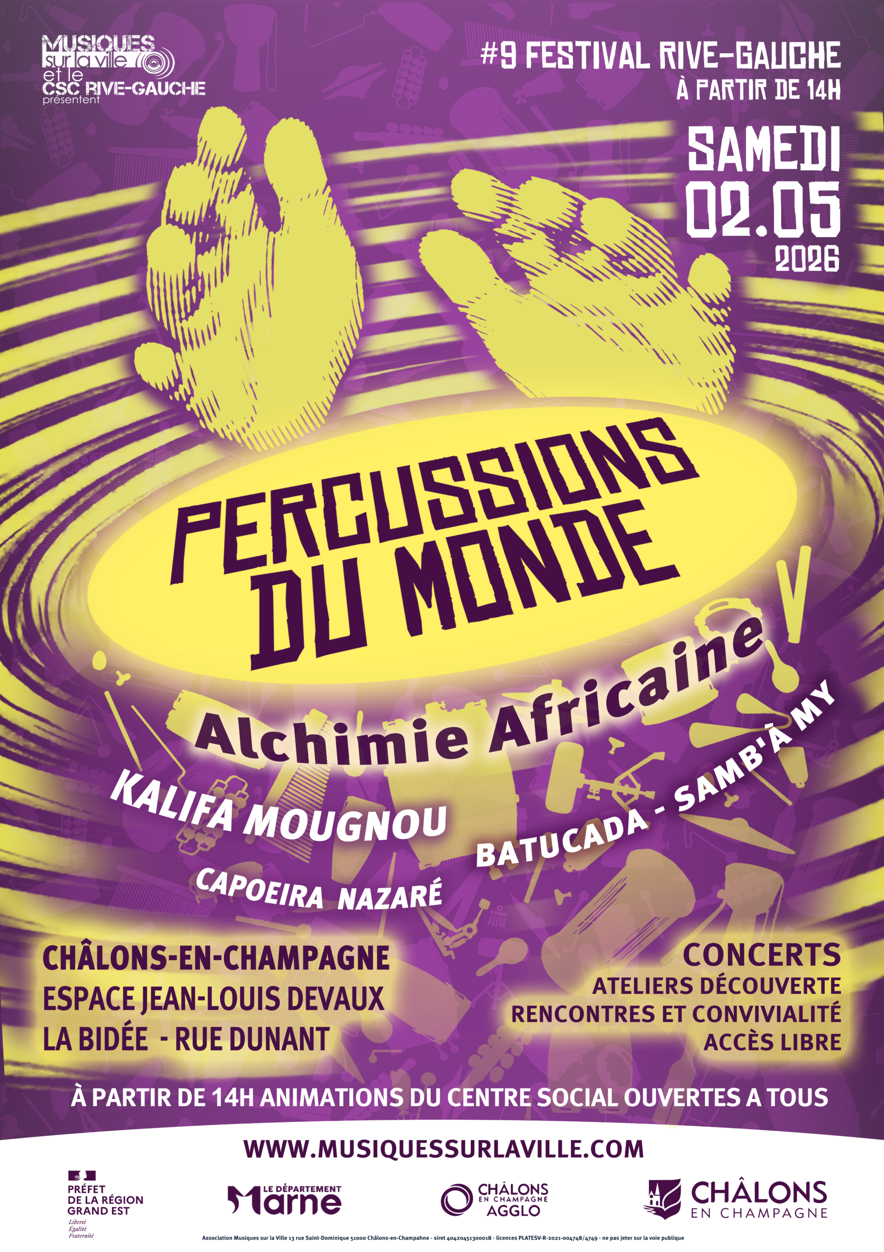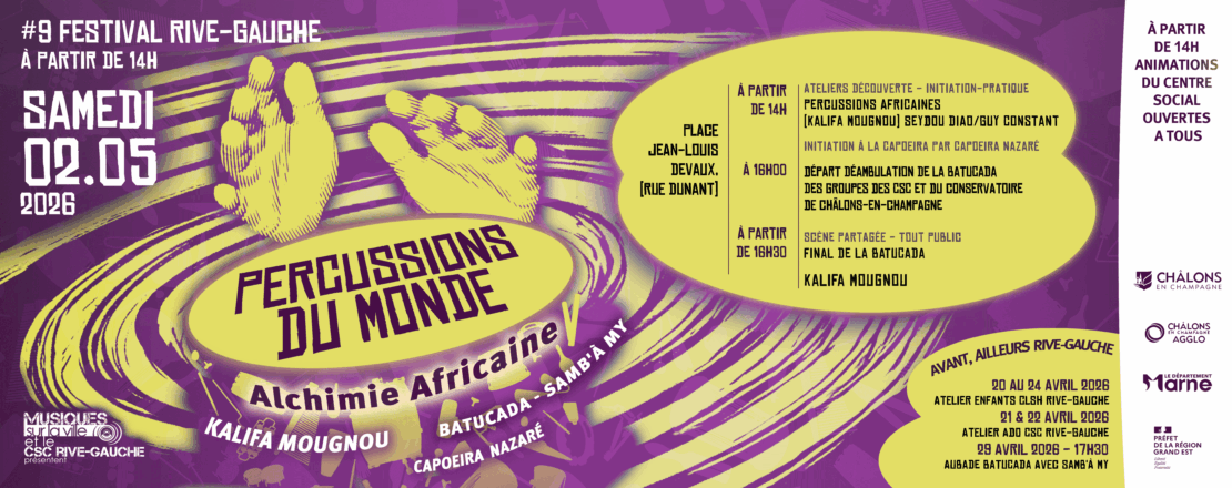- À 14h30 : atelier découverte des percussions africaines (ouvert à tous, inscription conseillée).