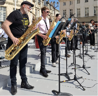 • Julien Rodriguez joue du saxophone.